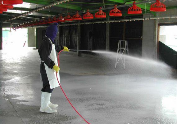 از آنجایی که شستشوی مرغداری باعث ریشه کن شدن عوامل بیماری زا نمیشود حتما باید با استفاده از وسایل ضدعفونی کننده اقدام به ضدعفونی مرغداری کرد.